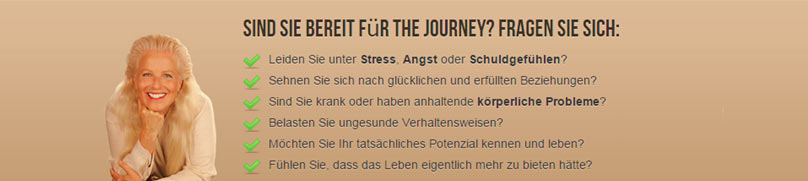 2. Zellerinnerungen auflösenDurch ihre Arbeit entdeckte Brandon den direkten Zugang zu unterdrückten Zellerinnerungen (im Körper gespeicherte Traumata) und zudem einen Weg, die damit verbundenen Verletzungen und verborgenen Themen aktiv zu lösen.The Journey kann bei verschiedenen Problemen und Themen eingesetzt werden. Menschen, die beispielsweise unter Burn-Out oder Depressionen litten, wurden durch die Anwendung der Journey-Prozesse wieder gesund. Auch in vielen anderen Bereichen hat sich der Einsatz der Journey-Methode bewährt, z.B. bei der Auflösung von Angst, Wut oder Scham, bei sexuellen Blockaden, mangelndem Selbstwertgefühl, unverarbeiteter Trauer, chronischen Schmerzen u.v.a.m.Langjährige Untersuchungen von Wissenschaftlern und Medizinern erklären die Erfolge der Journey-Methode. Dr. Bruce Lipton, Candace B. Pert, Ph. D. und Deepak Chopra fanden heraus, dass auf molekularer Ebene verdrängte oder aufgestaute Emotionen zu einer Blockierung der Zellrezeptoren führen können. Dieses noch weitestgehend unbekannte Wissen um die Ursachen körperlicher und emotionaler Erkrankungen ist die Grundlage von The Journey. Wir können es für unseren Heilungsprozess nutzen und unseren Fokus nun darauf richten, was unsere Gesundheit stabilisiert, anstatt uns mit Krankheitssymptomen zu beschäftigen, die uns schaden |